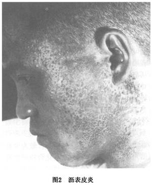 3.经常接触工业用油者,如切削油、机油、柴油、粗制石油及沥青等,均可发生毛囊炎、黑头粉刺及痤疮样损害(图1)。
