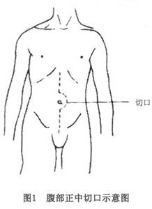 ①肾动脉水平以下的腹主动脉瘤手术方法:取上腹部正中绕脐切口,自剑突下至耻骨联合(图1),依次切开腹部各层将肠管置于腹壁外,以手术纱垫小心保护,以免损伤。从小肠系膜根部左侧,打开后腹膜,向上游离至 空肠起始部,向下游离至双髂总动脉,左肾静脉横跨腹主动脉前方,游离腹主动脉时注意避免损伤之。腹主动脉显露后,在肾动脉水平以下游离瘤颈(图2),套止血带以备阻断血流用。然后沿瘤体左侧向后游离并逐一结扎、切断左侧腰动脉。纵行切开瘤体前壁,迅速取尽血栓和动脉硬化斑块。根据动脉直径大小,取16mm 或18mm 聚四氟乙烯人造血管或涤纶人造血管行腹主动脉-人造血管对端吻合术。用无损伤性血管缝合线,自后壁向前壁连续间断外翻缝合(图3~6),该吻合口外常套一小段相同口径的人造血管,覆盖保护。远心端吻合可做在腹主动脉上或直接与双髂总动脉开口吻合,仍做连续外翻缝合法(图7)。肠系膜下动脉一般可结扎,在切开动脉瘤壁前先用小无创钳夹住该动脉,待人造血管吻合结束后可观察降结肠及乙状结肠,若无缺血表现,可予结扎,否则需将其吻合在人造血管壁上。腹主动脉瘤瘤壁一般用来包裹人造血管。也可切除瘤体后再做人造血管与腹主动脉及双髂总动脉吻合术。
