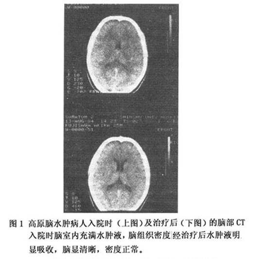 1.脑细胞毒性水肿(cytotoxic edema) 细胞毒性水肿系指脑组织缺血性和(或)缺氧性损伤引起的脑细胞内水肿,致使大脑功能严重障碍。病人可出现昏迷,颅内压增高,脑脊液量剧增等;脑CT和MRI检查表现为大脑灰质水肿。细胞毒性水肿主要是由严重缺氧引起的脑细胞能量不足,从而导致离子泵功能减弱,钠在细胞内潴留。最近,Green (2000)等发现,当人体进入6200m高原时,肌细胞Na -K -ATP酶出现下调(down-regulation)。另有报道,当动物吸入15%低氧混合气体时,脑血流量及血乳酸无明显变化,而吸入6%的氧8min,脑血流明显增加,血乳酸含量增至40mg/ml。说明严重缺氧导致脑细胞能量代谢障碍,高能氧化磷酸化过程减弱,其结果既可降低细胞膜的离子转运,又可增强无氧酵解,乳酸产生增多,致脑血管扩张,血流量增加。缺氧也可直接作用于血管内皮细胞,释放扩血管因子,使小动脉平滑肌舒张,血流及血容量增高,血管渗透性增加。由于脑毛细血管渗透压增高,血浆内的胶体物质、离子、水分从细胞外移入细胞内,出现脑细胞渗透性肿胀(osmotic swelling)。脑组织肿胀及脑容积增加,一方面可压迫周围小血管,使局部血液循环不足,另一方面因血管压力增高,毛细血管机械性损伤而局部供血不足,出现灶性脑缺血(focal ischemia)。根据MRI的检查,细胞毒性脑水肿常常由急性高原病的基础上发展而来,故有人把中,重型急性高原病称之为轻型脑水肿,即血管性脑水肿,但在临床上很难明确区分。